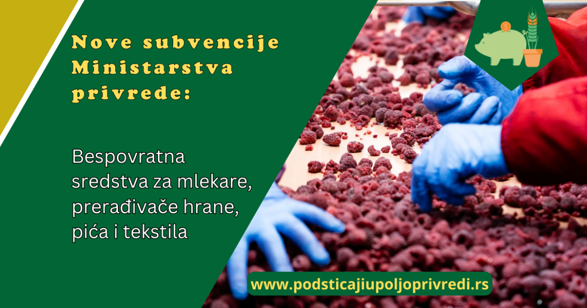 Ministarstvo privrede Republike Srbije proširilo je listu javnih poziva usmerenih ka jačanju domaćeg preduzetništva. Novi programi finansijske podrške dizajnirani su da direktno pomognu modernizaciju proizvodnje, sa posebnim akcentom na korišćenje 100% domaćih sirovina u prehrambenom sektoru.