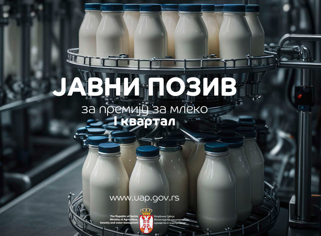 Uprava za agrarna plaćanja Ministarstva poljoprivrede, šumarstva i vodoprivrede raspisala je Javni poziv za podnošenje zahteva za ostvarivanje prava na premije za mleko za prvi kvartal 2026. godine, saopšteno je danas